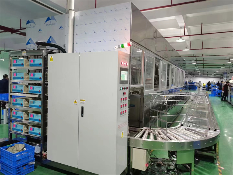 超聲波清洗設(shè)備多為箱槽結(jié)構(gòu),清洗槽大小決定單次清洗能力,可以根據(jù)被清洗零部件大小和數(shù)量選擇清洗槽清洗形式可以是單槽清洗,也可以是多槽清洗,單槽清洗即為零部件在一個清洗槽內(nèi)清洗完畢多槽清洗,是指將清洗過程分為多個工步,零部件從第一個槽清洗后,進人第二個槽繼續(xù)清洗,之后再進人第三個槽,第四個槽·····一般每個槽主要去除一種污染物清洗液需要根據(jù)零部件材料選擇,金屬材料常用的清洗液有汽油、酒精、水劑等,非金屬材料清洗液多為對零部件無損害的溶液單槽清洗時常選用汽油、酒精等揮發(fā)性溶液,溶液揮發(fā)性強化清洗效果;多槽清洗時,多選用水劑,主要考慮降低成本和提高安全性等因素不論是單槽清洗還是多槽清洗,隨著清洗過程的進行,溶液溫度會逐漸上升,同時也會導(dǎo)致被清洗零部件溫度上升,一般多槽清洗后溫度在45一55℃,單槽清洗后溫度在25~40℃兩種清洗方式都會伴隨出現(xiàn)“發(fā)泡”現(xiàn)象,發(fā)泡會增強去污力清洗前需要對零部件進行防護處理,保護被清洗零部件,清洗后對零件進行防銹處理,最后進行包裝。
